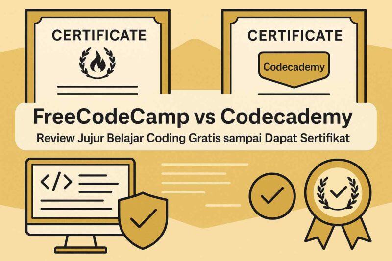 Anda bukan satu-satunya yang bertanya-tanya: “Kalau belajar coding gratis, sertifikatnya nanti dianggap nggak sama HR?” Dilema ini nyata, apalagi ketika dua nama besar seperti FreeCodeCamp dan Codecademy menawarkan jalur belajar tanpa harus keluar duit—setidaknya di awal. Sebelum Anda habiskan ratusan jam, mari kita bedah mana yang benar-benar mengantarkan skill dan mana yang hanya memberi illusion of progress.