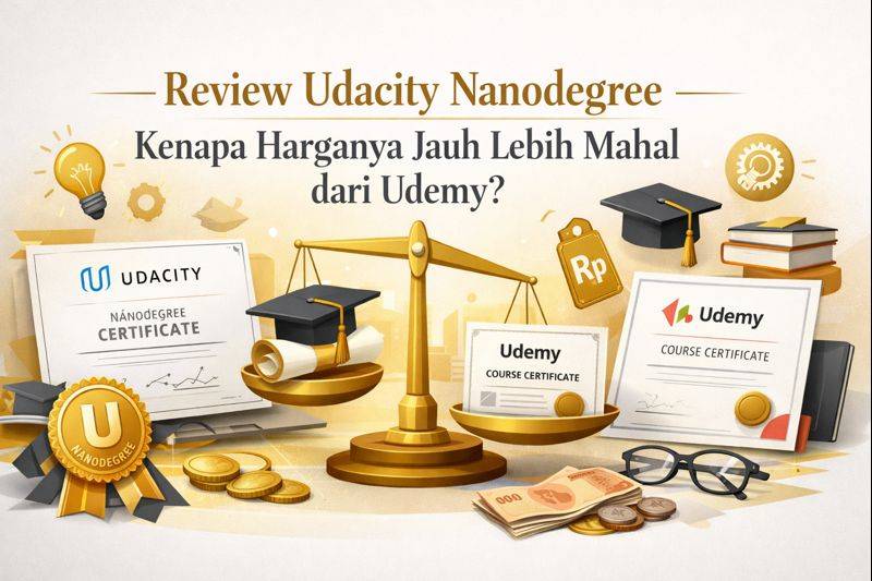 Kalau kamu pernah bandingin harga kursus online, pasti pernah ngeliat Udemy di bawah 200 ribu sementara Udacity Nanodegree bisa tembus puluhan juta. Pertanyaan wajarnya: apakah harga selangit itu beneran worth it? Sebagai yang pernah ngeliat dari sisi pembelajar dan rekruter, aku bakal bantu kamu paham apa yang sebenarnya dibayar.